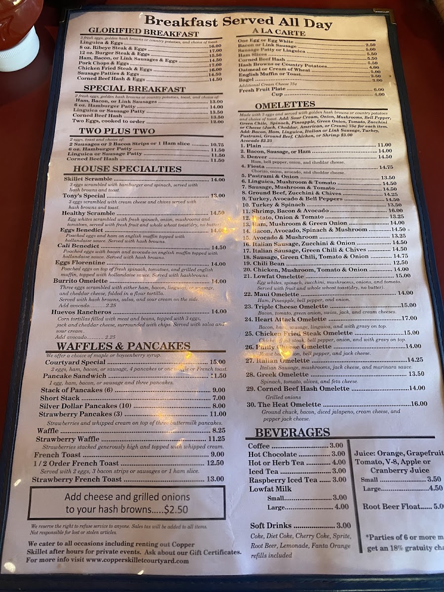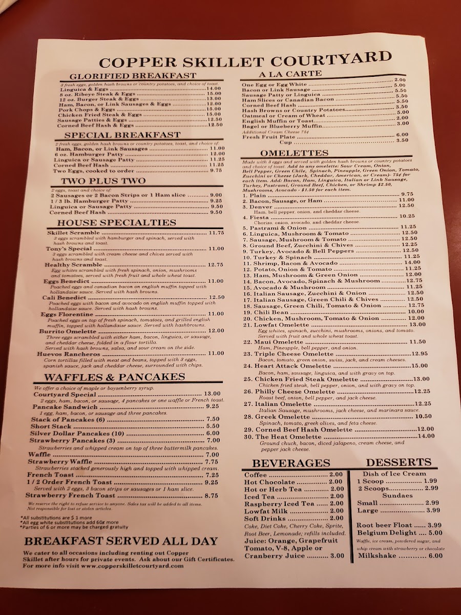 Copper Skillet Courtyard Menu