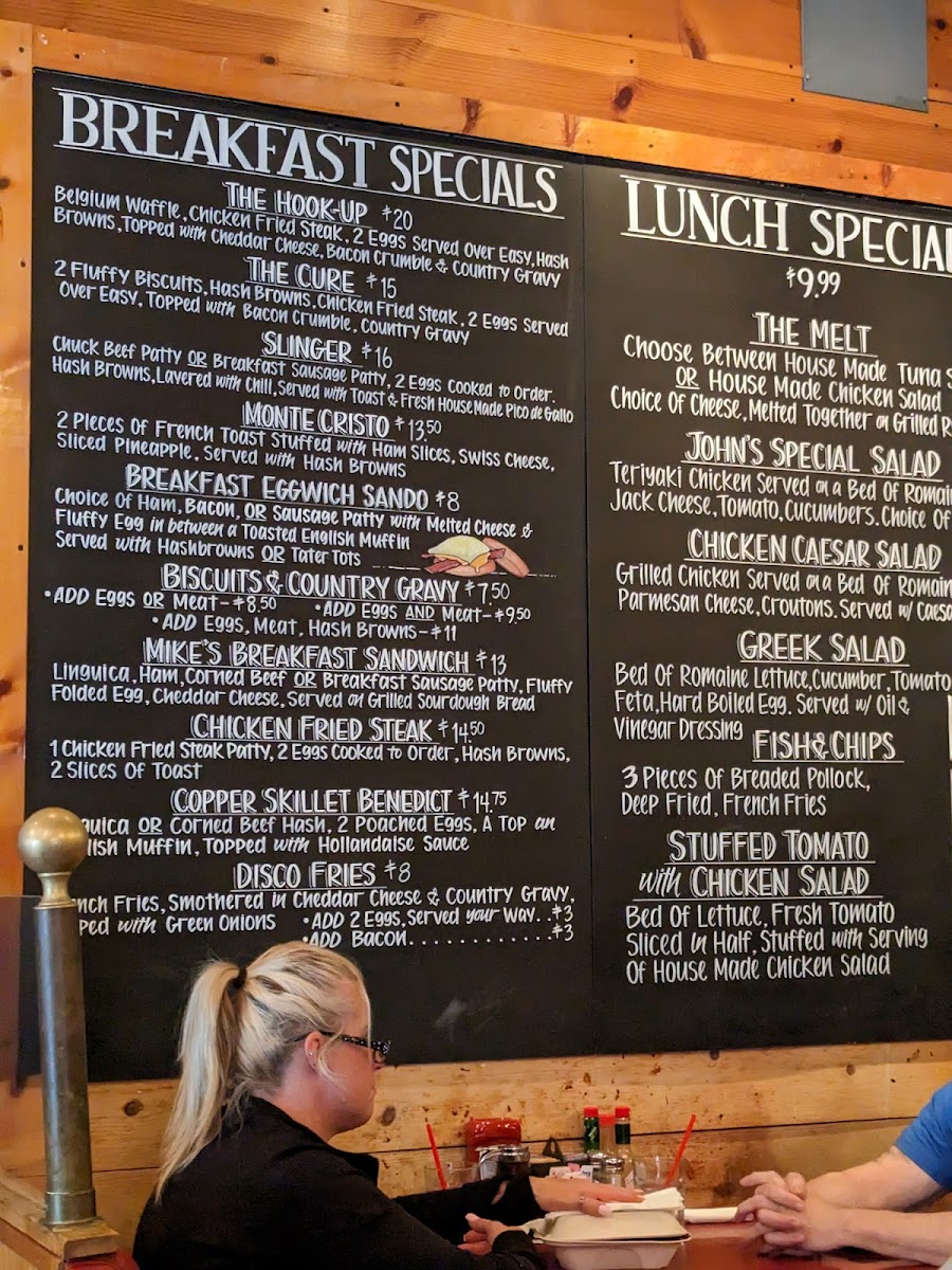 For lunch, savor the irresistible Tuna Melt or the refreshing John’s Special Salad, all reasonably priced at $12.99. The cozy atmosphere, adorned with vintage knotty pine, enhances your dining experience and complements the delectable flavors on your plate.